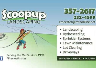 At Scoopup Landscaping, we provide high-quality landscaping options. Our team works throughout Wasilla, Palmer, Big Lake and Eagle River, Alaska, to bring beauty to your landscape. See our gallery below to view some of our past projects, then call us to get a free estimate for your project.